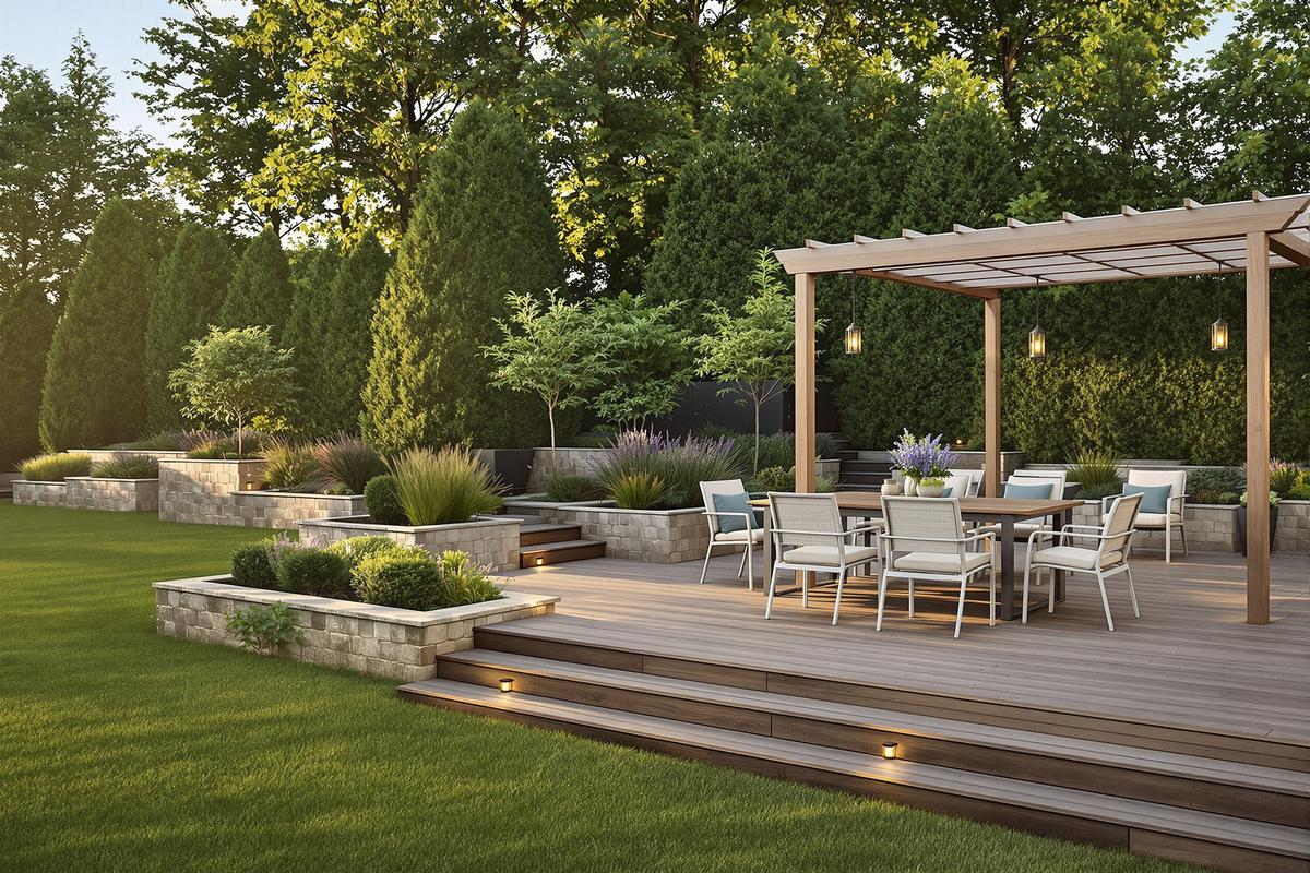 Ein ordentlicher Aufbau macht auch kleine Gärten größer. Wichtig ist, Übergänge sanft zu gestalten – Rasen, Hochbeet und Terrasse sollten sich logisch anfühlen, fast wie von selbst entstanden.